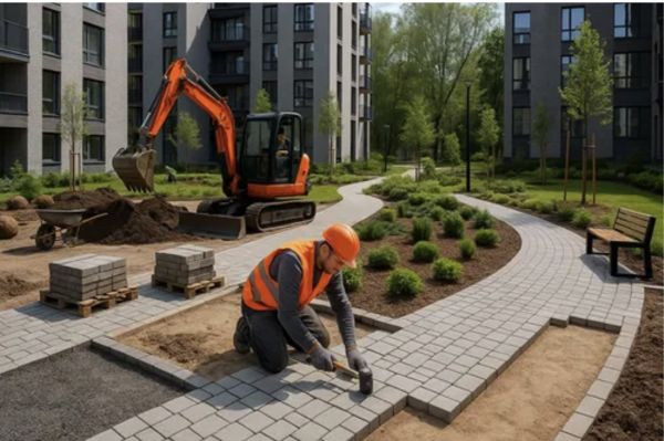 ⛰️ Выравнивание земляного полотна — основа под любую мостовую;